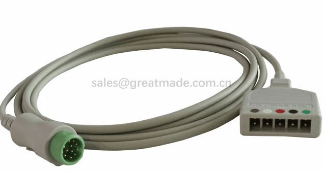 互換性のあるMindray Beneview T5 T6 T8 IPM IMEC患者モニター5リード12ピンecgトランクケーブル