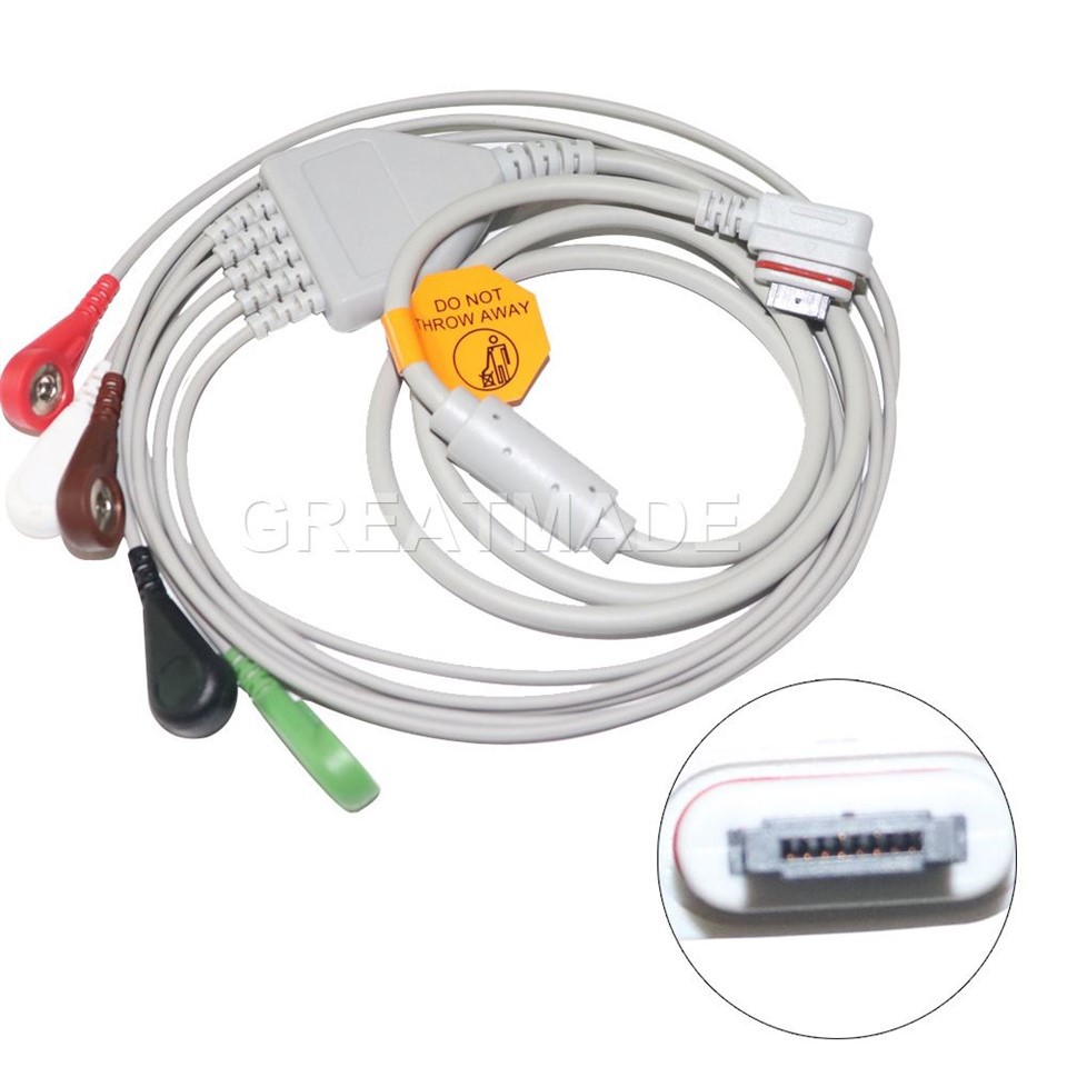 互換性があるwith:oem no . 2008594-003 5- lead holter ecg cable leadwires for ge seer light、2チャンネル(5-ld)、aha、snap