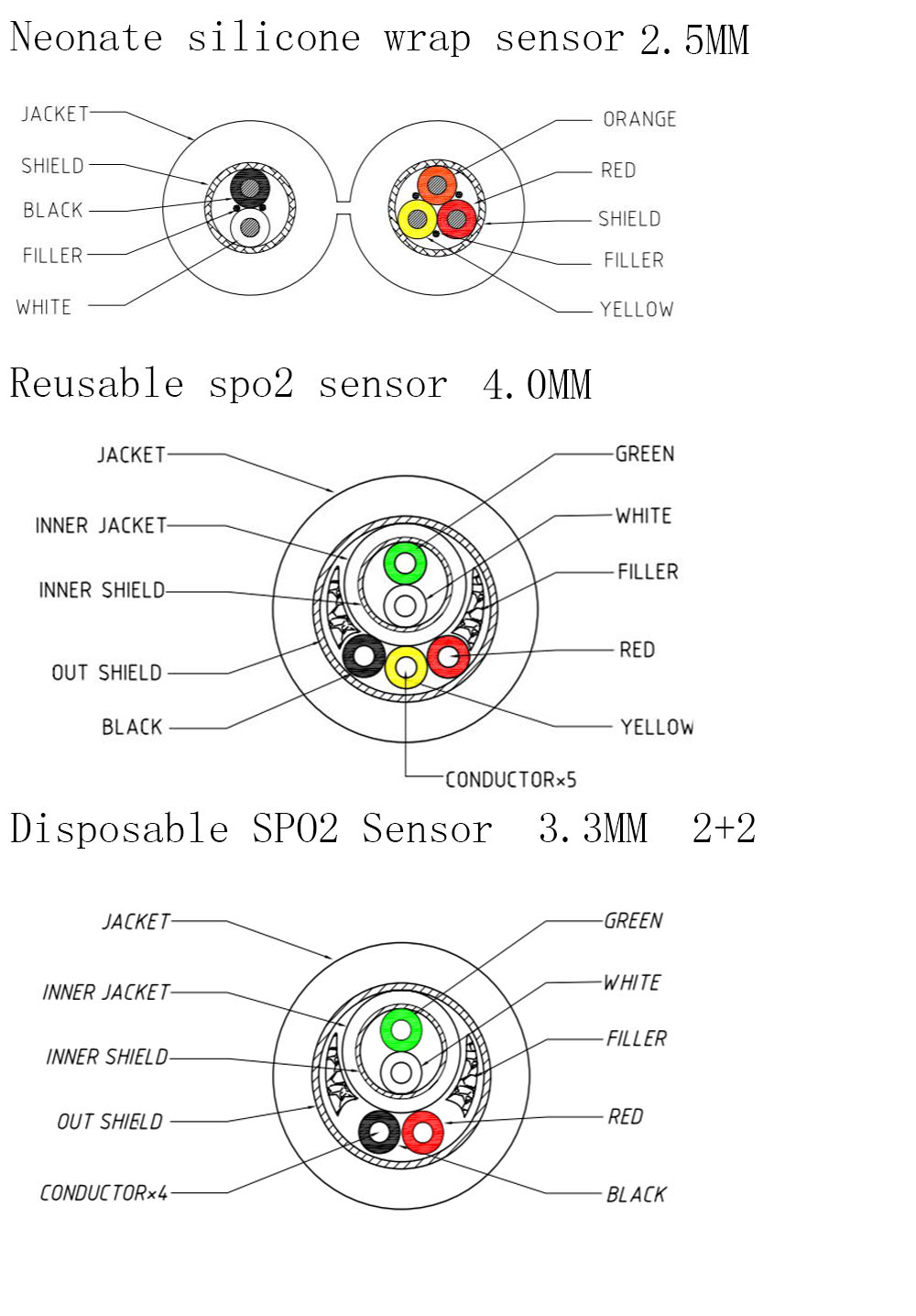 SpO2ケーブルの患者側とデバイス側は、さまざまなモデルと互換性があり、ニーズに応じてカスタマイズできます。 カスタマイズが必要な場合は、お問い合わせください。